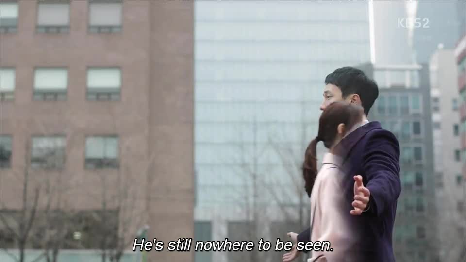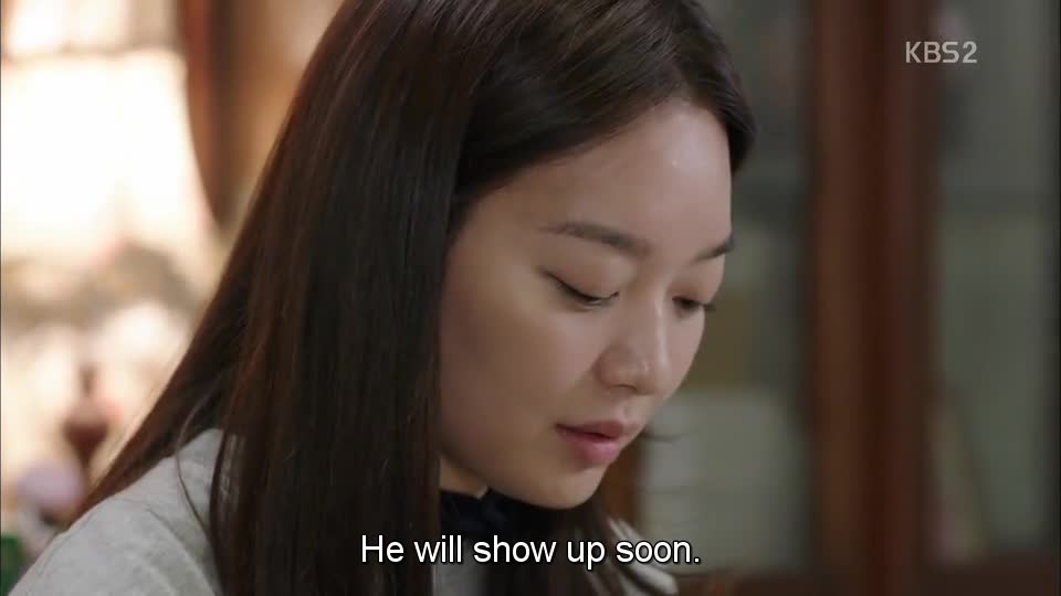 Joon Sung mengenakan mantel pemberian Joon Sung dan terus menunggu puteranya.