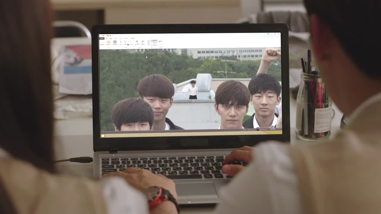 Rim sedang melihat hasil foto-foto Sang Woo saat perkelahian Ki Chul – Sang Tae.