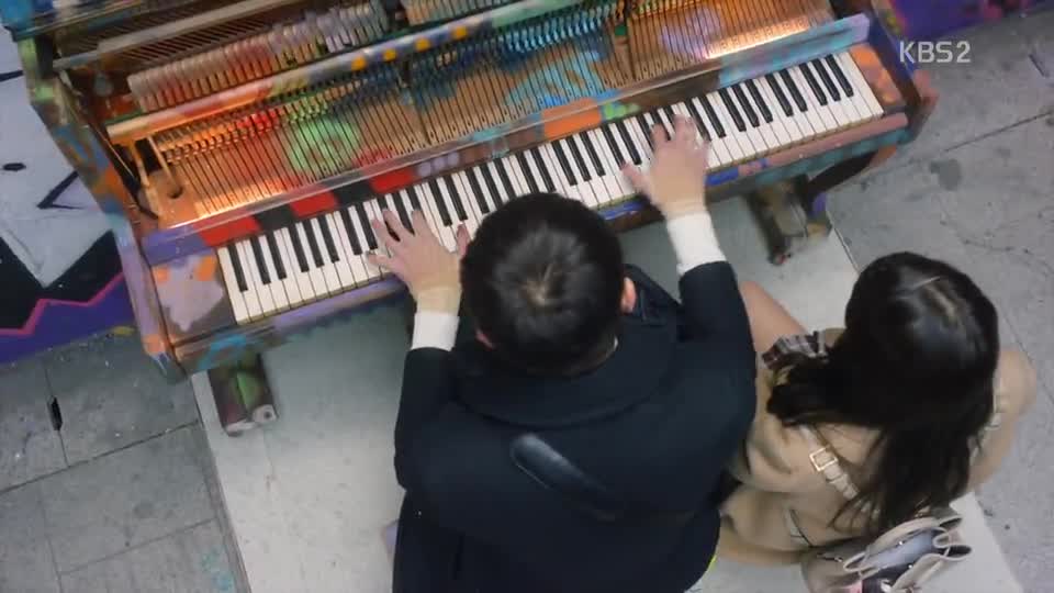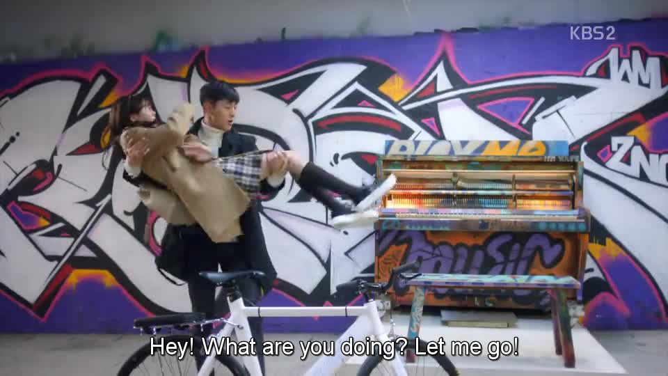 sepedanya di depan piano nyentrik dalam terowongan. Yoo Seul bertanya mengapa