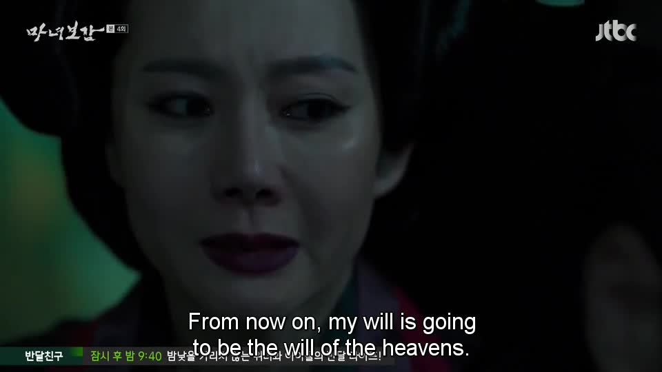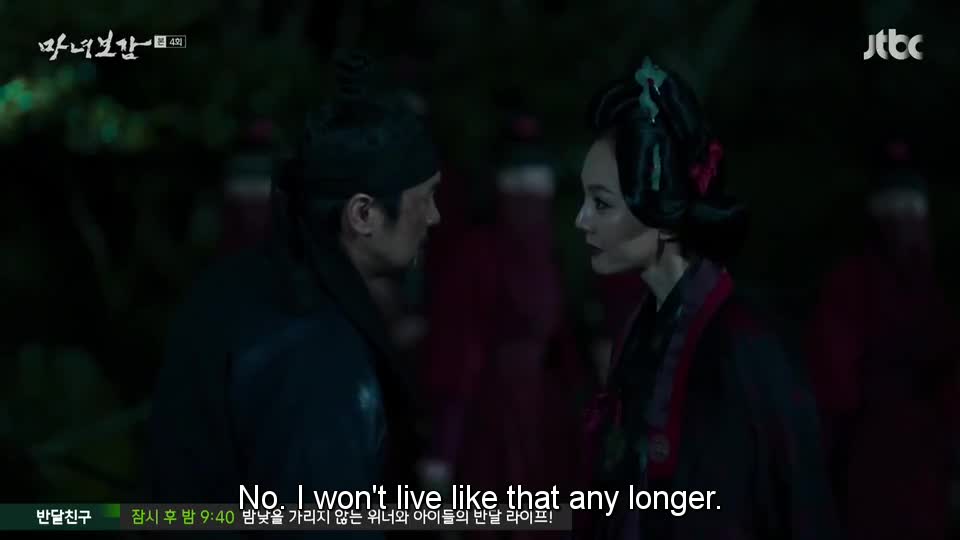 Meski Yeon Hee ingin mati saja agar tidak ada orang lain yang mati karenanya, tapi ia berusaha hidup dan menuruti keinginan ayahnya. Ia memang terlihat pasrah dan menyerah ketika melihat Heo Jun terpanah menggantikan dirinya. Tapi di kolam, ia berusaha untuk keluar dengan memukul-mukul es yang membeku di permukaan. Ia berusaha hidup untuk memenuhi perintah ayahnya...mungkin juga karena ia merasa bersalah semua ini terjadi karena ia melanggar perintah ayahnya.