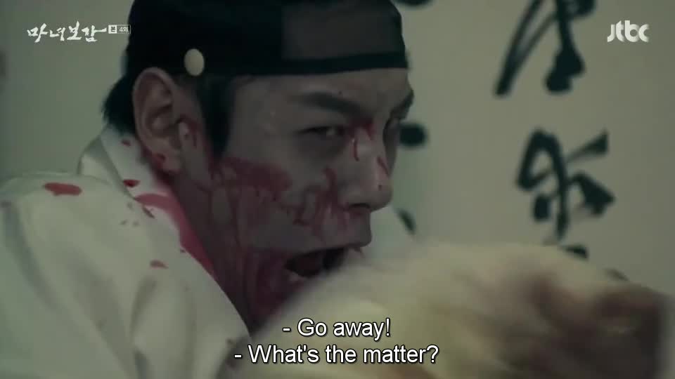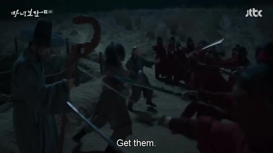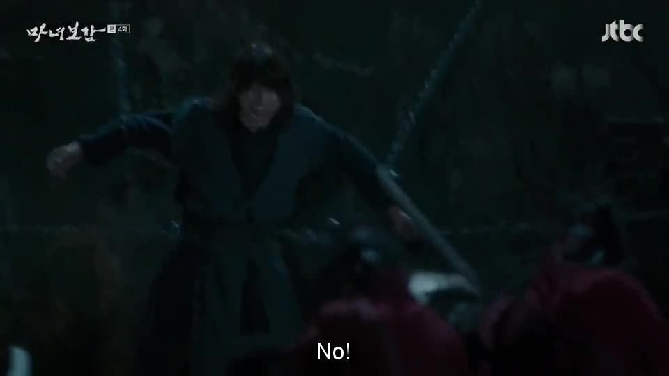 pedangnya dan Hyun Seo roboh ke tanah. Hong Joo memerintahkan anak buahnya