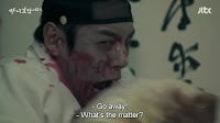 berjalan pergi. Tapi Hong Joo menusuk punggungnya dengan pedang hingga tembus