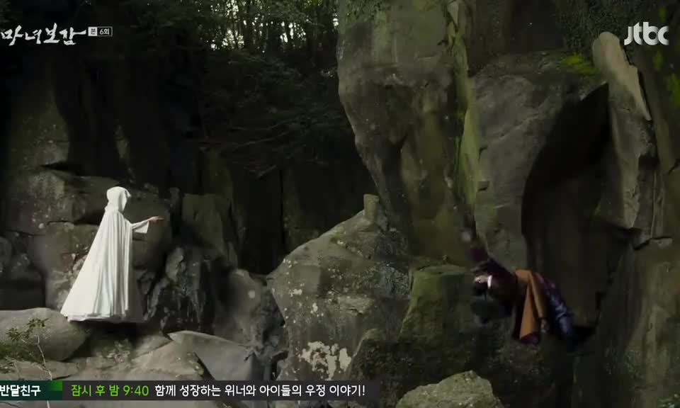 Tiba-tiba ia berhenti jatuh. Tubuhnya melayang sebelum ia menyentuh tanah. Heo Jun kebingungan dan menoleh ke sana kemari. Ia menengadah dan melihat Seo Ri.