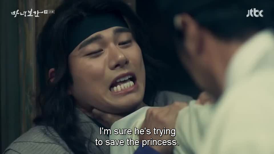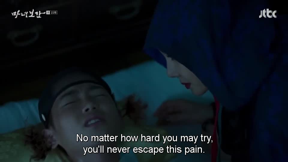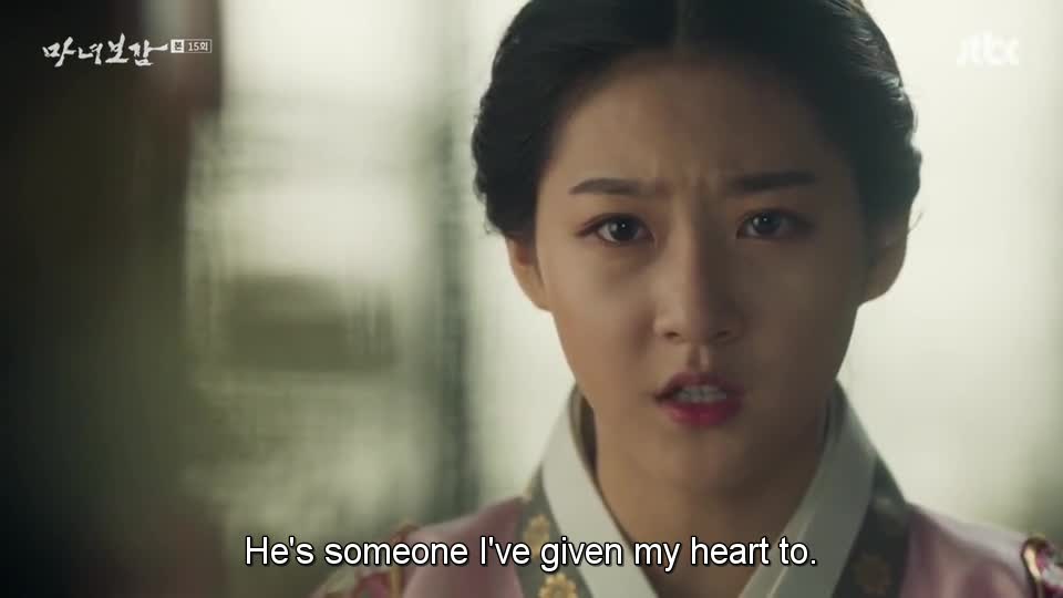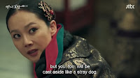 “Saat aku berpikir betapa kau mempermalukan aku (ketika ia curhat sampai menangis di depan Jun, Yeon Hee dan Ibu Suri), aku ingin memenggalmu,” omelnya. Ia menyuruh Jun pergi.
