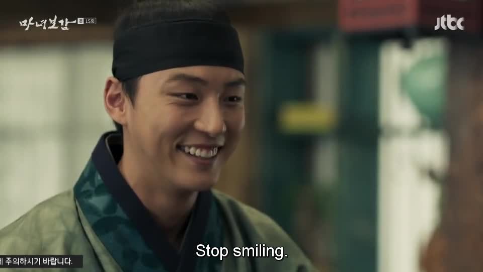 Perawat Yo Gwang berusaha melihat lebih dekat ramuan yang dibuat Jun. Tapi asapnya malah membuatnya batuk-batuk sampai Jun harus menutupi mulutnya dengan wajah seperti mau menangis.