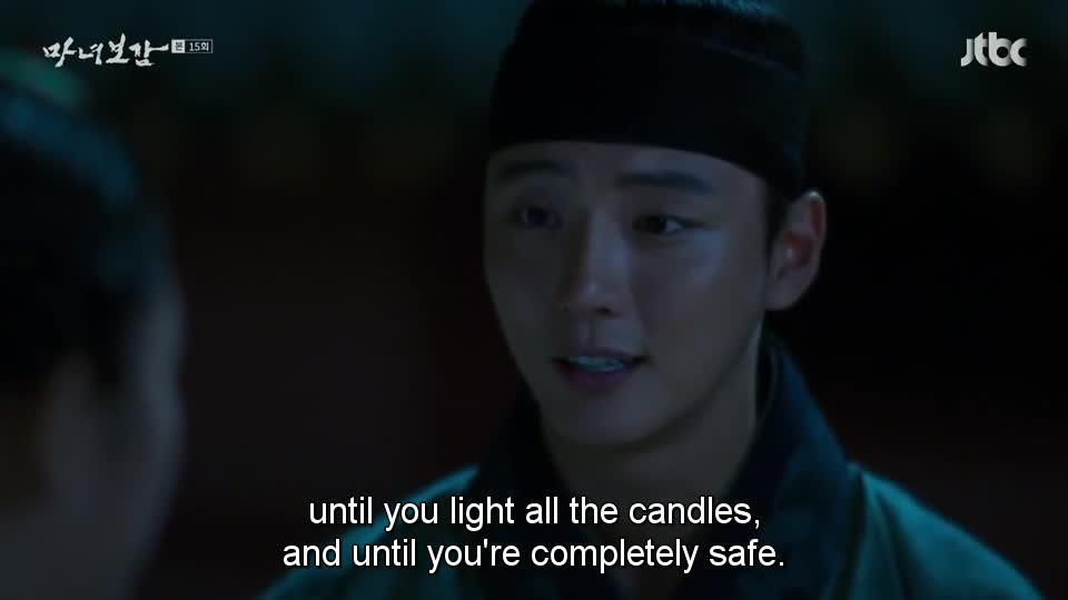 Yeon Hee menatap Jun. Jun berkata ia akan terus menjaga Yeon Hee sampai semua lilin menyala dan sampai Yeon Hee sepenuhnya aman.