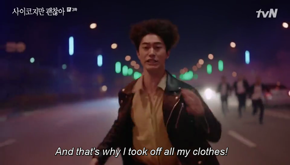 Gi Do menutup kembali jaketnya karena malu. Ia berkata itu