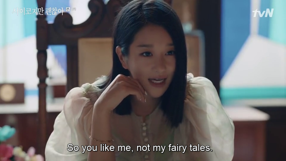 “Jadi kau menyukaiku, bukan dongengku,” kata Mun Yeong
