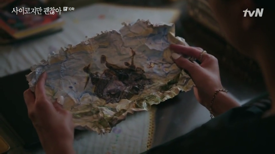 Mun Yeong pulang dan melihat gambar yang tadi dibuang Sang
