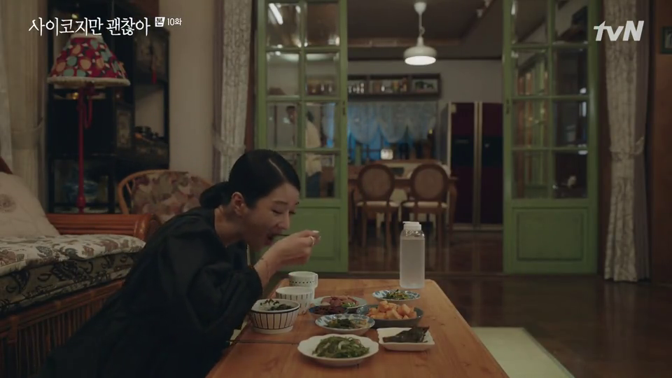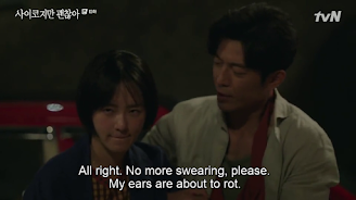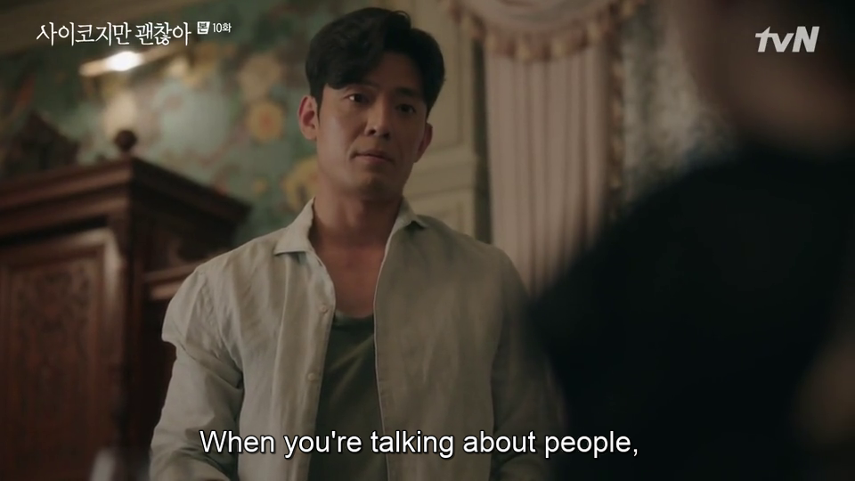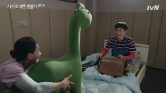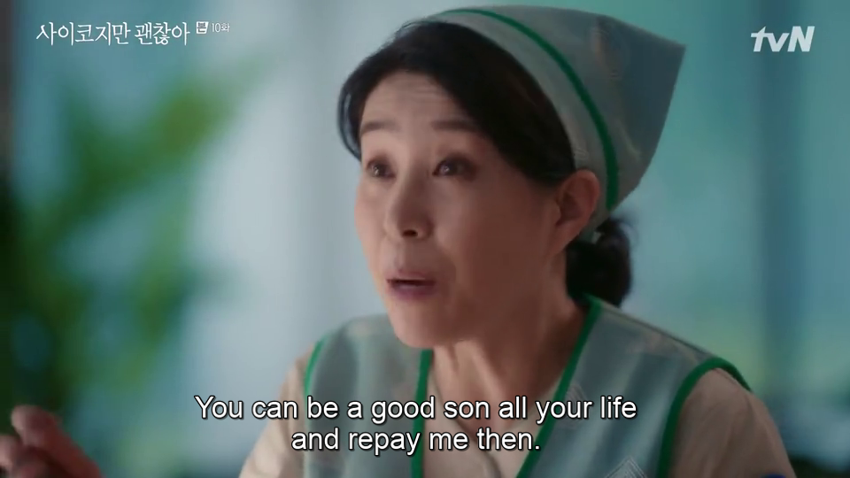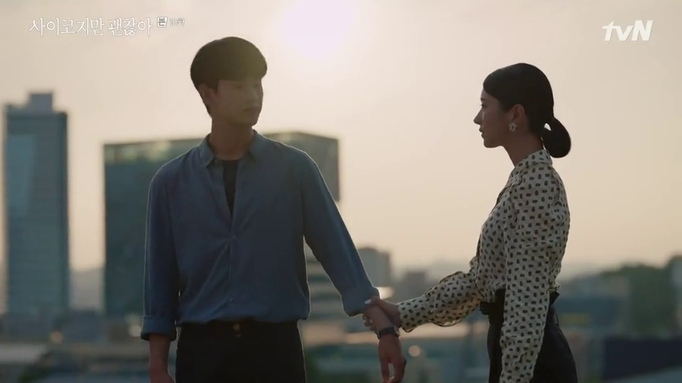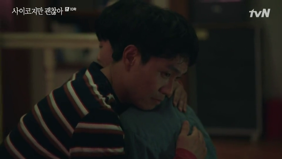 Ia melemparkan salah satu sepatunya hingga mengenai punggung Kang Tae. Barulah Kang Tae berhenti dan menoleh. Mun Yeong meminta maaf dan berkata itu salah Kang Tae karena bahunya terlalu lebar. Ia berkata ia lapar dan mengajak Kang Tae makan siang.