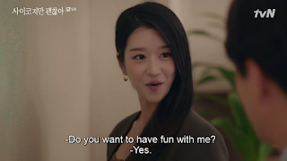 pemilik, Kang Tae mengajak Mun Yeong pulang. Tapi Mun Yeong tidak mau. Ia suka