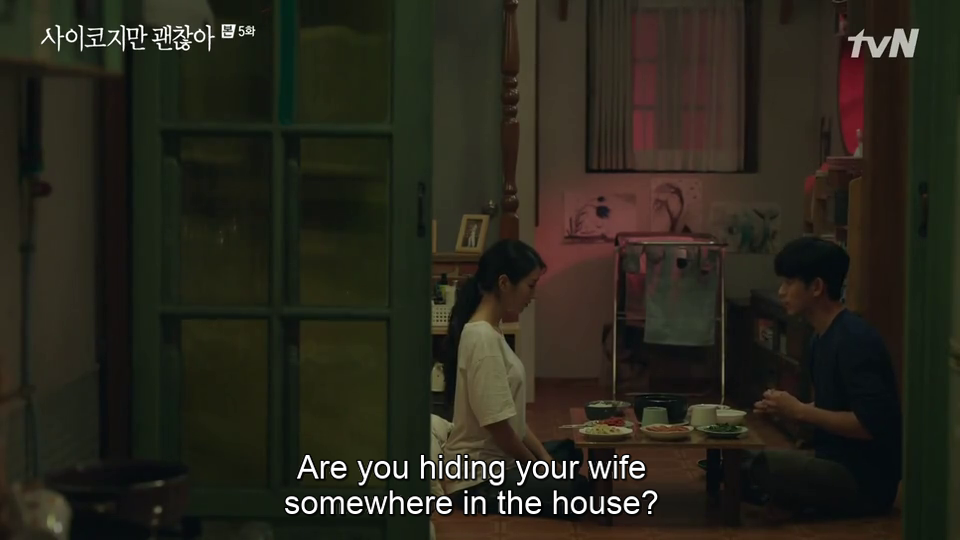 Mun Yeong menjauhi kakaknya. Sang Tae mengigau karena mabuk di meja makan. Isi